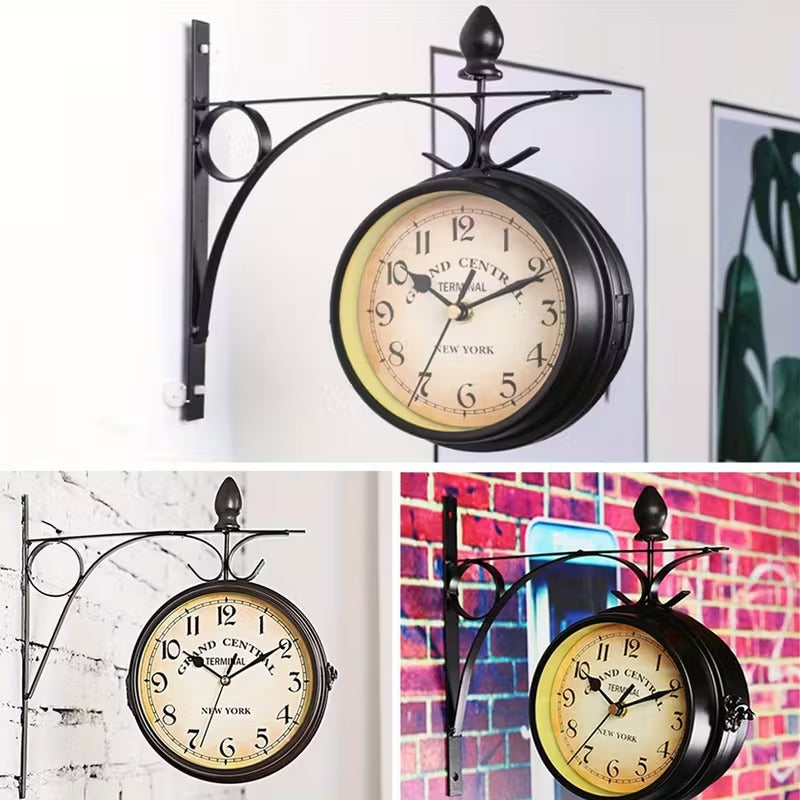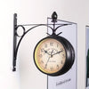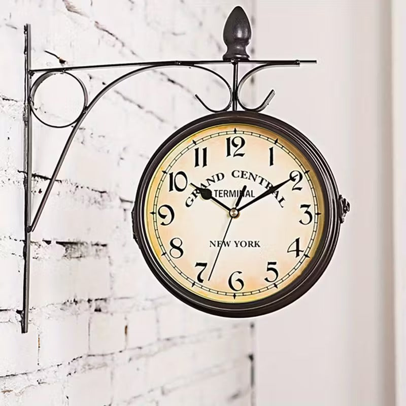 European-Style Double-Sided Wall Clock – Vintage Iron Art Hanging Clock for Indoor & Outdoor Use
