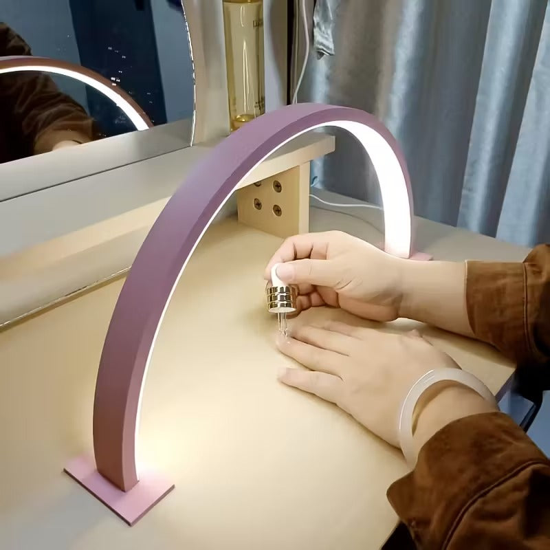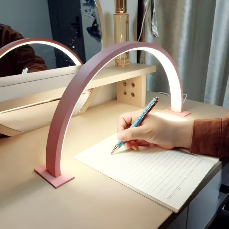Crafted with a sturdy metal structure, the lamp ensures stability and long-lasting use. Its compact base and vertical crescent design maximize desk space while adding a touch of contemporary charm to your décor.
