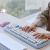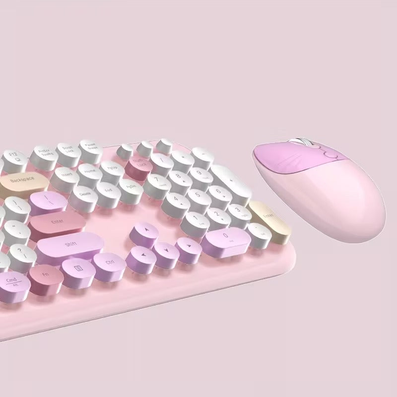 The rounded keycaps mimic the feel of classic typewriters while delivering soft, quiet keystrokes. Ergonomically designed for extended use, the keyboard and mouse reduce hand fatigue and enhance productivity during long hours of work.